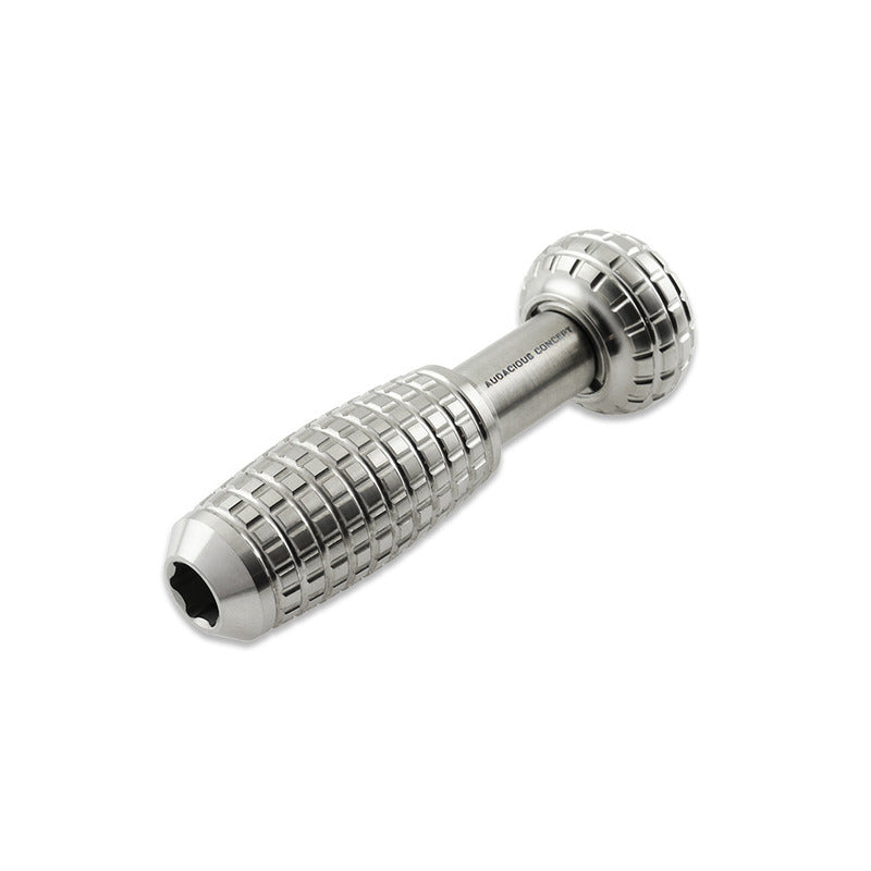 Introducing the Ansø Knife Tool Mini, a collaboration between Audacious Concept and Danish designer Jens Ansø. This compact 69 mm version preserves the precision engineering, smooth rotation, and ergonomic control of the original - now enhanced with a clean, refined Satin titanium finish. Lightweight, durable, and timeless, it’s a compact driver crafted for everyday performance.